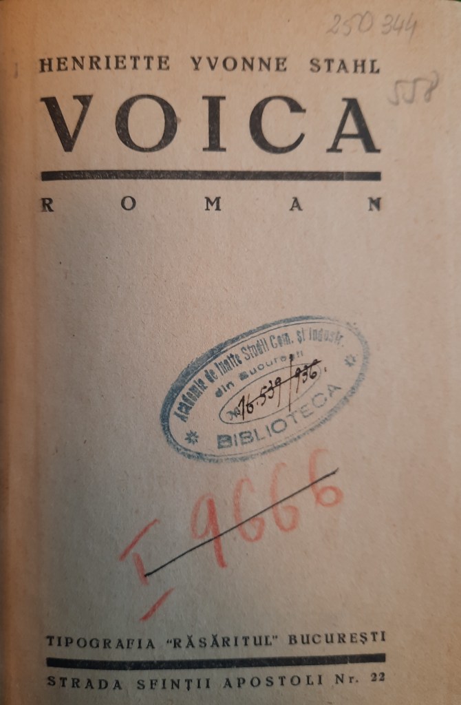 [1] Constanța-Valentina Mihăilă, Henriette Yvonne Stahl între mistică și modernitate (București: Editura Muzeului Literaturii Române, 2014).
